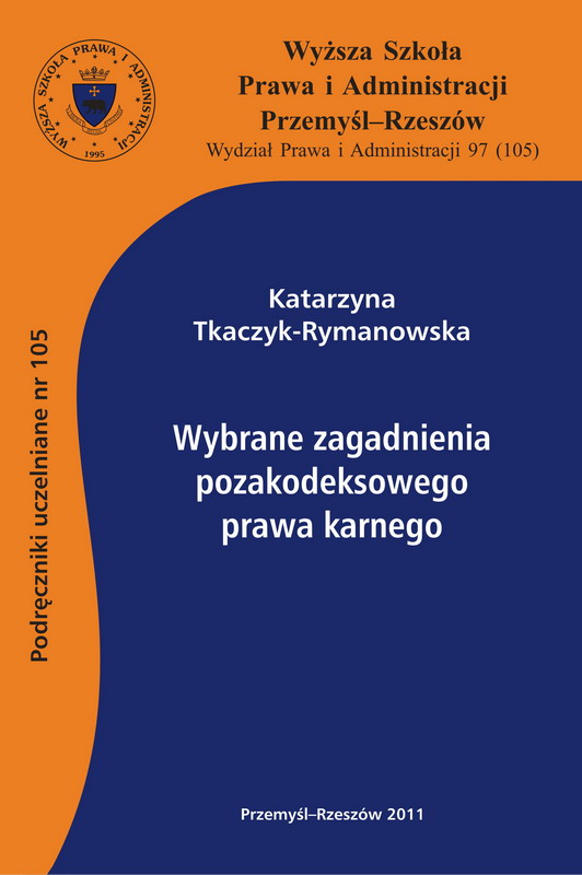 Podręcznik uczelniany nr 105 WSPiA – autor: Katarzyna Tkaczyk-Rymanowska „Wybrane zagadnienia pozakodeksowego prawa karnego”